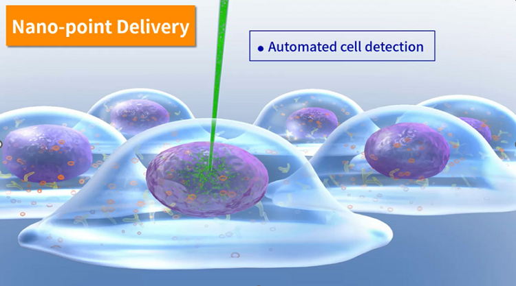 Single - cell targeting with direct delivery into nucleus or cytoplasm.